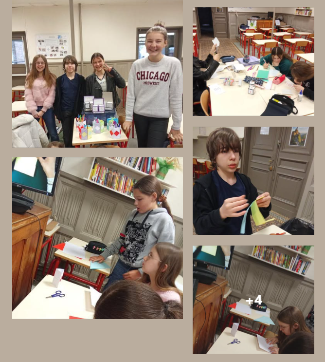 Travaux manuels pour nos internes le mercredi après-midi : calendriers perpétuels et pots de crayons en origami. ![]()
