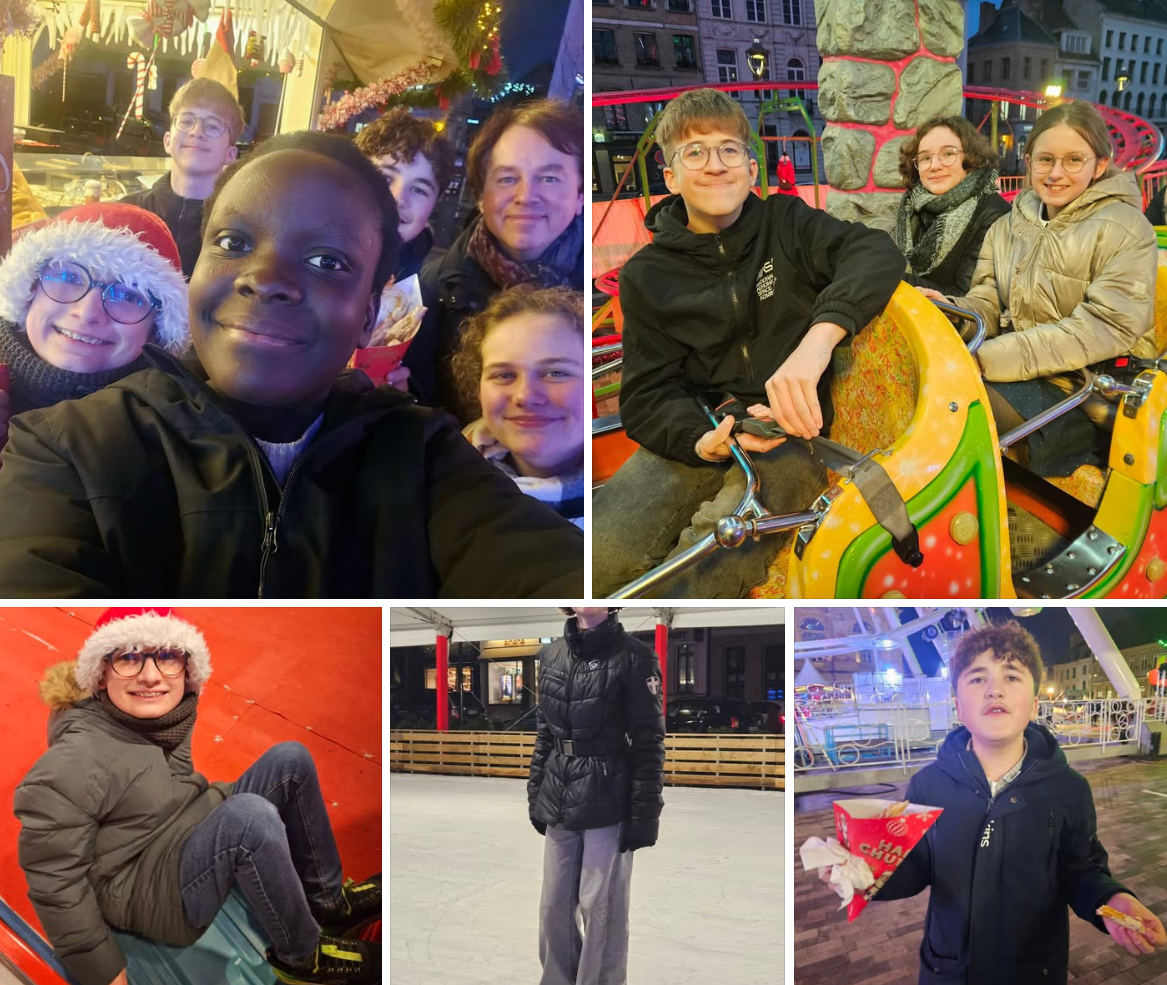Les germanistes internes en classe de quatrième ont passé un agréable moment de partage et de convivialité au marché de Noël de Saint-Omer ce mardi soir. Au programme : sucreries, tours de manège, luge et patinoire ! La sortie s’est terminée par un joli discours de Laure pour remercier les élèves et leur professeur de leur présence et de leur bonne humeur.