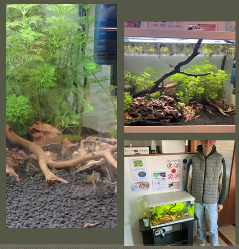 « A travers ce projet, j’ai eu l’envie de partager ma passion à mes camarades ainsi que de les sensibiliser à la protection de la nature. Aussi, je voulais montrer le fonctionnement de l’écosystème aquatique et éviter la maltraitance des poissons. J’ai introduit dans l’aquarium une multitude d’espèces végétales aquatiques et en poissons, j’ai introduit des guppys (Poecilia reticulata), des Garra cambodgiensis et des escargots (planorbe rose). » Gauthier