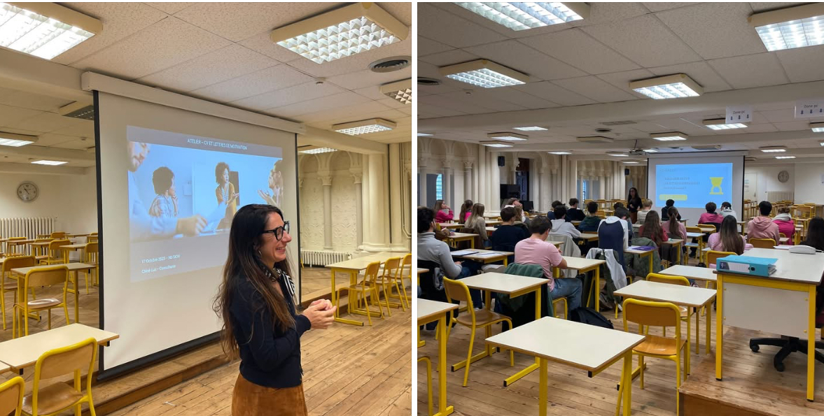 Après être déjà intervenue auprès de nos Terminales 👩🎓 pour la préparation des CV et lettres de motivation 📝, Mme Lux est à nouveau intervenue pour anticiper les entretiens 🧑💼 avec les professionnels qui se sont déroulés ces deux dernières semaines. Merci à l’APEL 🤩 pour la mise en place de ces ateliers essentiels à la préparation de la procédure Parcoursup 🙏.