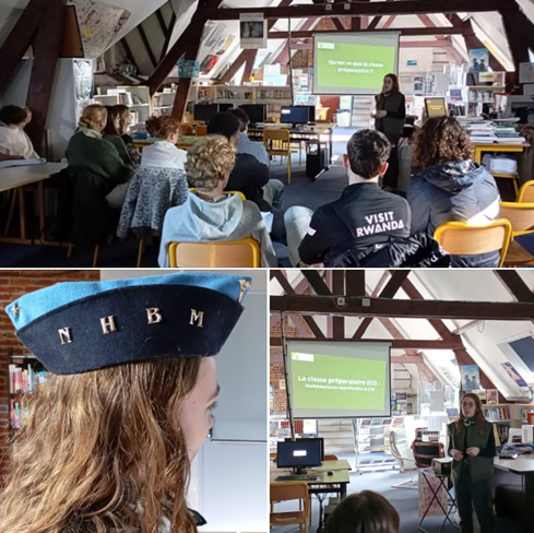 Merci 🙏 à Anaïs Butor, ancienne élève du lycée Notre-Dame de Sion 🏫, venue mercredi 3 mars 🗓️ au CDI pour nous présenter la classe préparatoire ECG du Lycée Nazareth Haffreingue à Boulogne-sur-mer. De petits effectifs permettent aux étudiants d’être bien accompagnés afin de préparer les concours d’école de commerce 🧑‍💼. Mais aussi d’acquérir des bases solides en mathématiques et en sciences économiques et sociales en vue d’intégrer des licences dans ces domaines, après avoir appris à s’organiser dans son travail et à persévérer dans les difficultés.