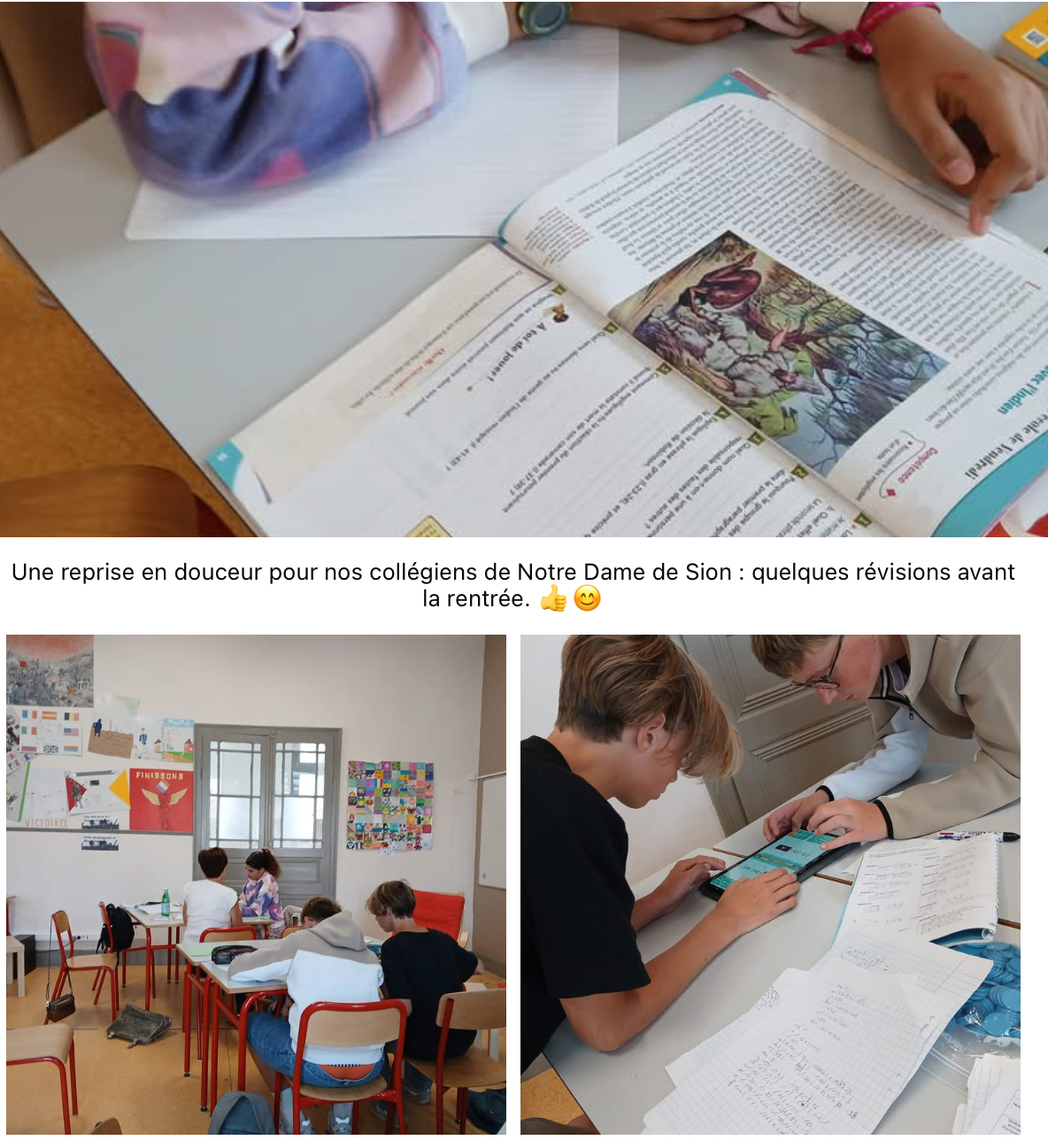 Une reprise en douceur pour nos collégiens de Notre Dame de Sion : quelques révisions avant la rentrée. 👍😊